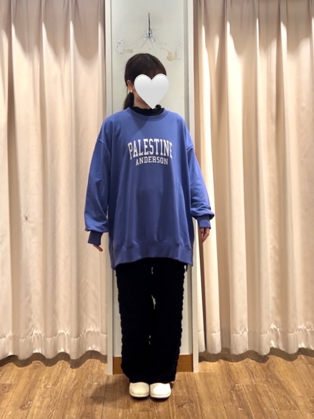 オーバーシルエットのスウェットに ポコポコがボリューミーな イージーパンツを合わせました🍿 パンツはシンプルながらも コーデのアクセントになってくれます👍