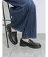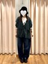 秋冬活躍する、くすみカラーの カーディガンを着用しました! 広めに開いた胸元からインナーの ロゴを見せると可愛いです🫡 全体的にカジュアルですが、黒のローファーを履くことでコーデが引き締まります
