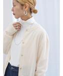 流行りのシアー素材と合体したカーディガンを着用しています!生地がモチモチで着心地が良いです😌ボタンがゴールド高見えします。 インナーはラメチュールハイネックを着ました。首元のラメのキラキラが甘さをプラスしてくれます✨