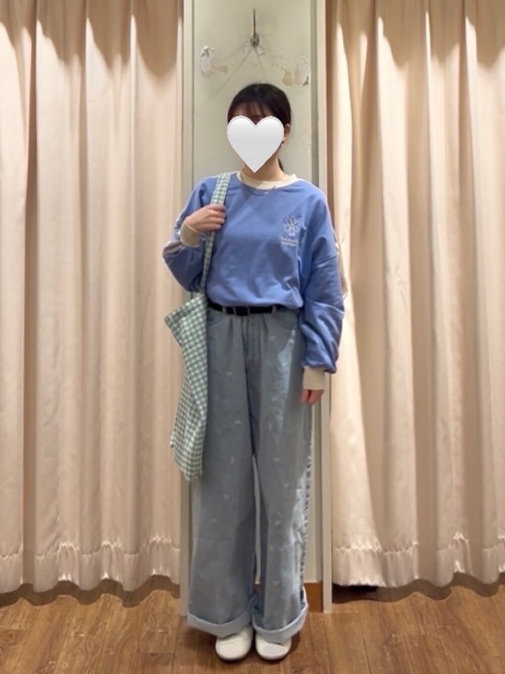 春らしいパステルカラーの爽やかコーデになりました🌸トップスはお袖にラインが入っていてアクティブな印象を演出してくれます!