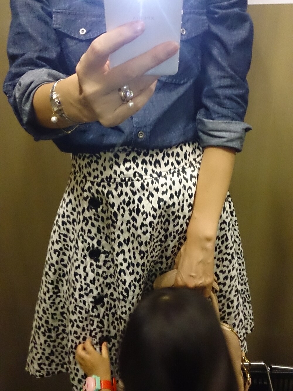 今日は、UNIQLOとベネトンでTシャツとネルシャツをゲットしました! UNIQLOの試着室にて♡ 娘の頭が‥‥。