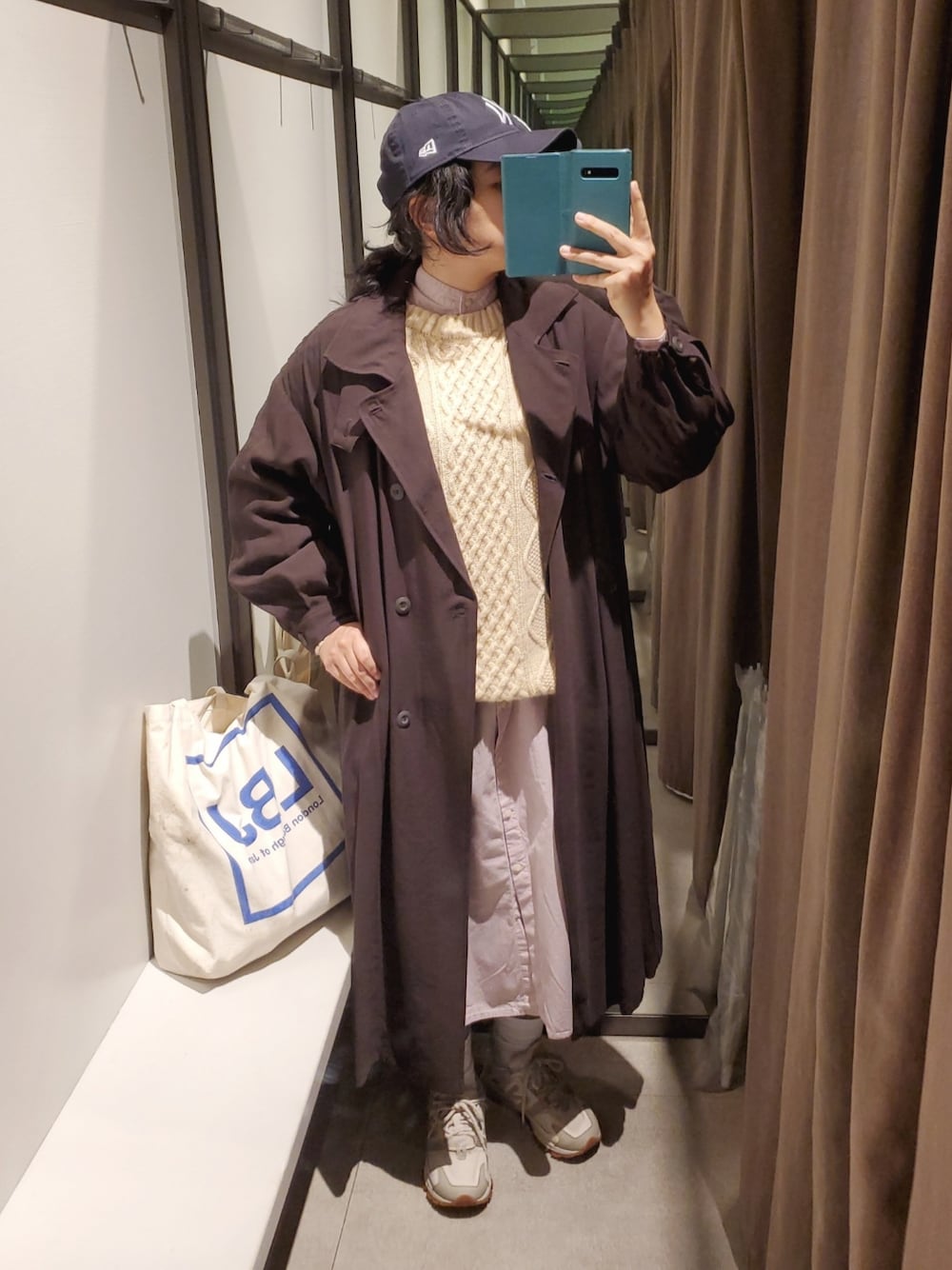 ちょっとでも寒くなったらすかさずケーブルニット着る 限界まで着る 好きだからーーー笑 コート→ANGIE キャップ→NEW ERA スニーカー→New Balance