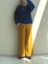 ニットもパンツも濃いカラー。メリハリ配色で体型をごまかす^_^ニットはポコポコしているから一枚だけでもコーデを締めてくれる^_^ いつもご覧いただきありがとうございます😊