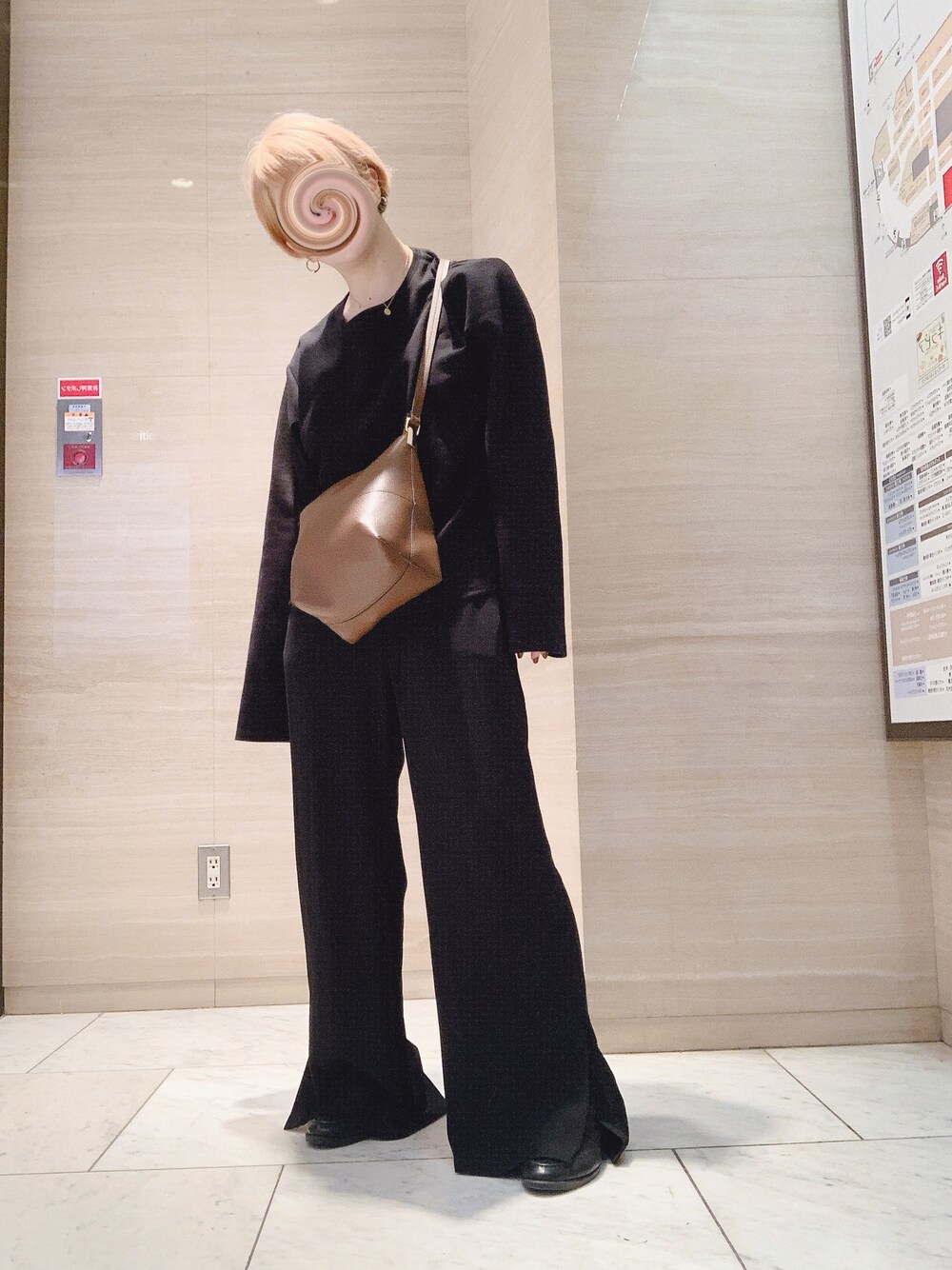 オールブラックコーデ 良くするし日々7割くらい全身真っ黒 このzaraのトップスは袖口も広めで、 シワもつきにくいしよきです。 H&Mのカバンもめちゃくちゃ安いのに 割としっかりして見えるのでおススメです。