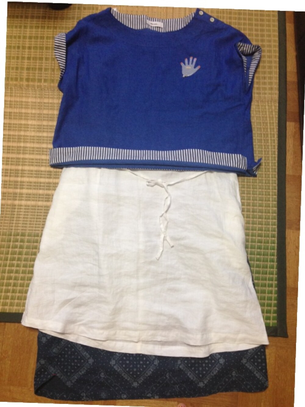 スカートにワンピースを重ね着しました。 niko and...のトップスに ブローチをつけました。