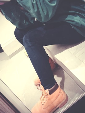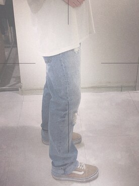 「EMODA(エモダ)の【ELDER】FIXジャストウエストデニム(デニムパンツ、ブルー系)」を使った、ピィーナッツさん(レディース)の春コーディネート