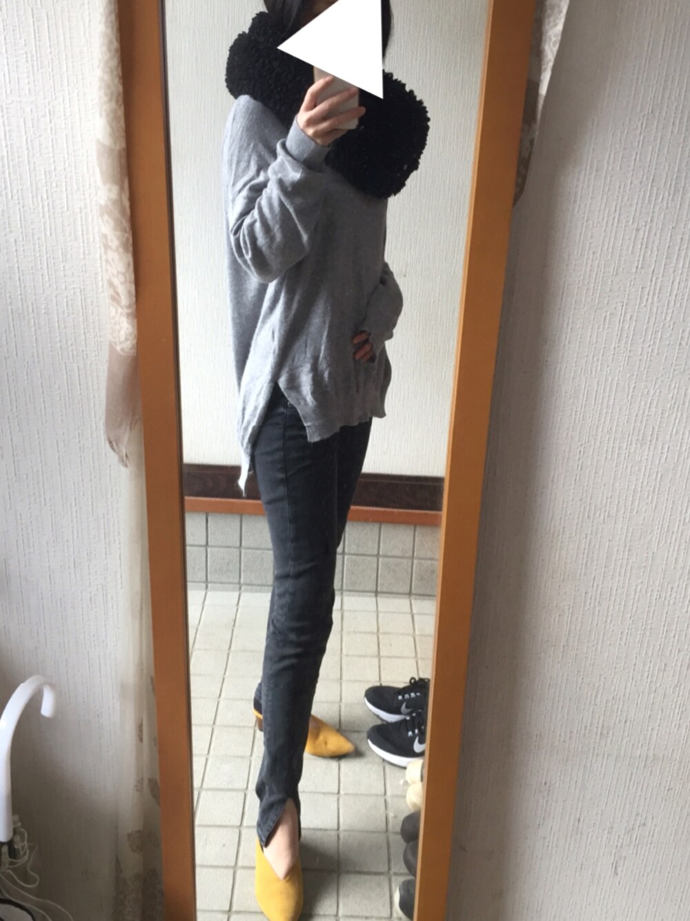 病院受診へー。 KBFのニットは何回着ても毛玉知らずで優秀。zaraのデニムは一目惚れ♡