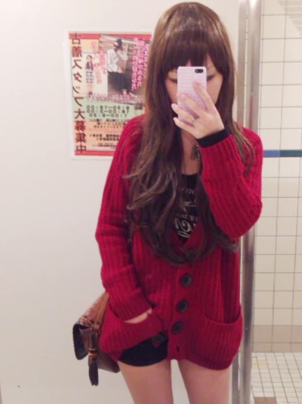 過去コーデ。 この赤ニットカーディガンくそ可愛くてやばかった。 オークションで買ったやつ!