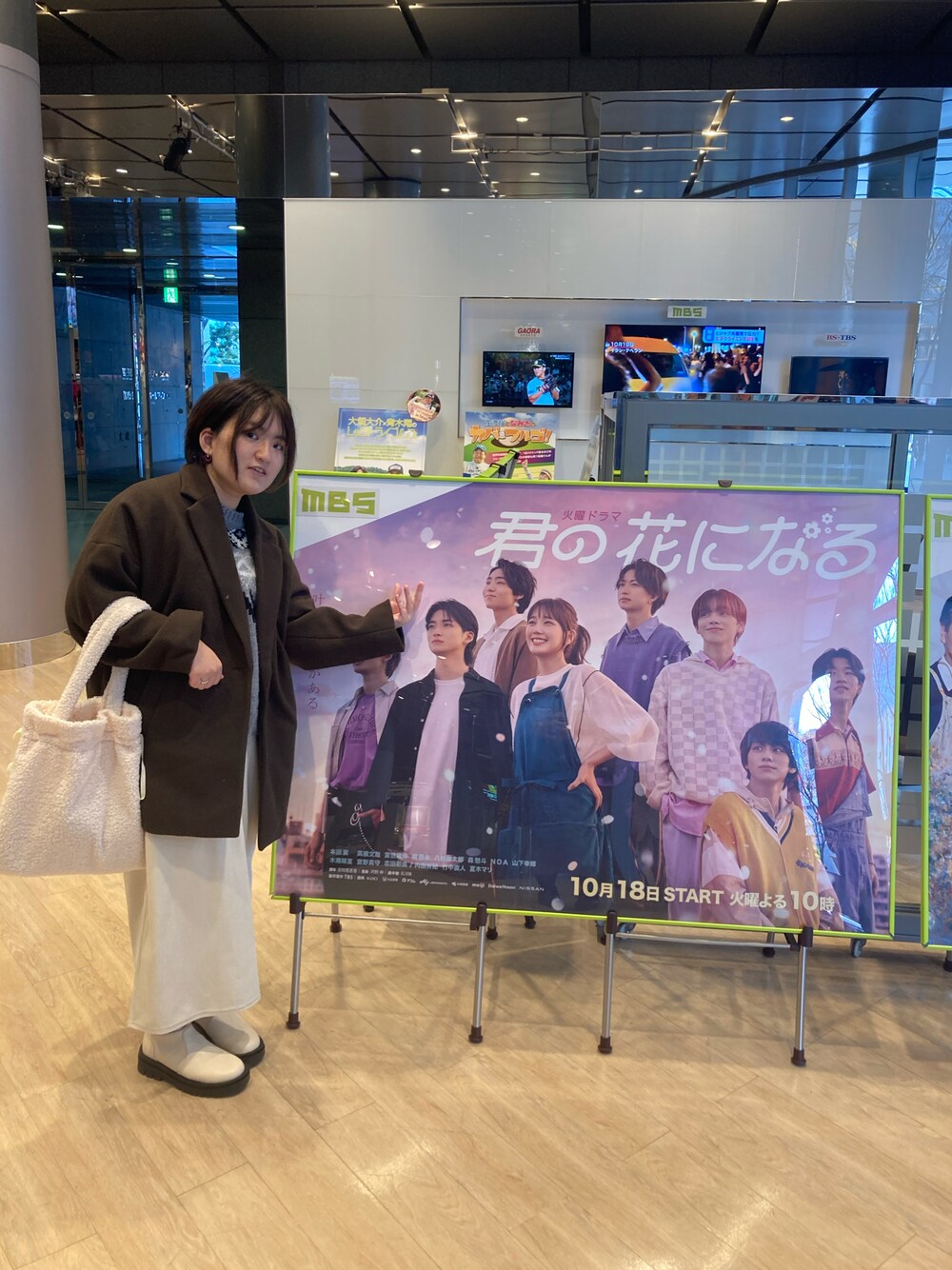 こちら12月21日のコーデです! BLOOMの梅田のPOPUPSHOP行きました😄 記念にMBSに行き8LOOMポーズしてきました! Let'sBLOOM♥️💓🤍💙🧡💛💜
