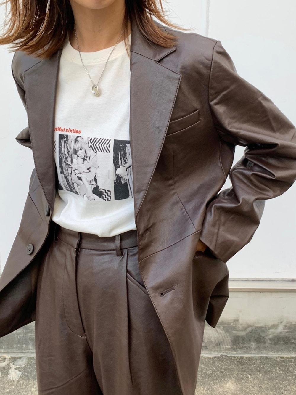 chiekoのセットアップ「F/LEATHER TAILORED ジャケット」を使ったコーディネート