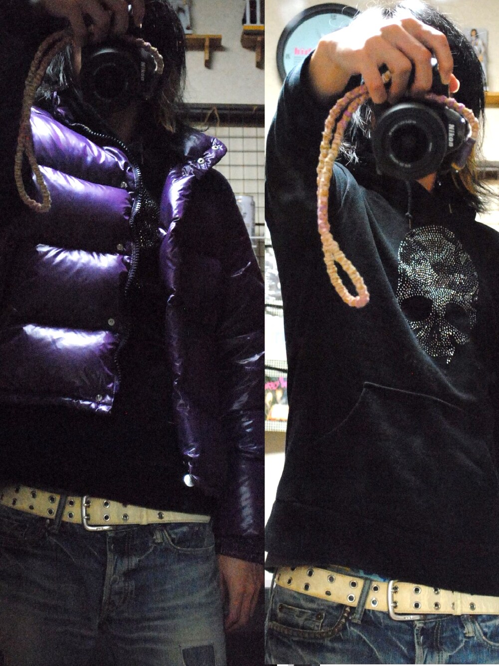 冬の定番アイテム、ダウンジャケット。 アウター脱ぐと見えかたがまた違って楽しめる。 デニムはあえてオーバーサイズでラフにしつつパーカーで締めるバランス。