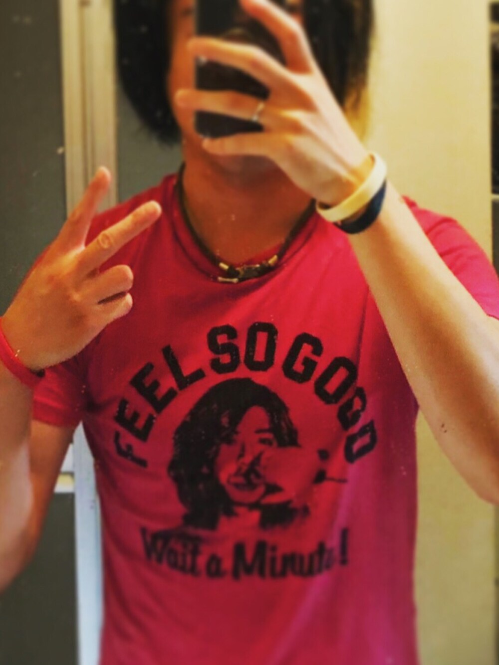 本日のTシャツはヒステリックグラマーのTシャツ。 これは写真集の特典で付いてきたTシャツ。ヒスのプリントっぽく木村さんがプリントされてます。そしてカラーもヒスっぽいショッキングピンクで単体で着るのに十分映えるカラーとなってます。 この時期にはこういったカラーのTシャツは存在感があって好きで着てます。
