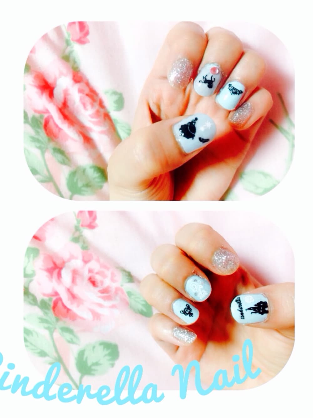 Cinderella Nail💎💍💕 セルフネイルで がんばって見たよ😌💙💙 ネイルシールは100均です👼👼