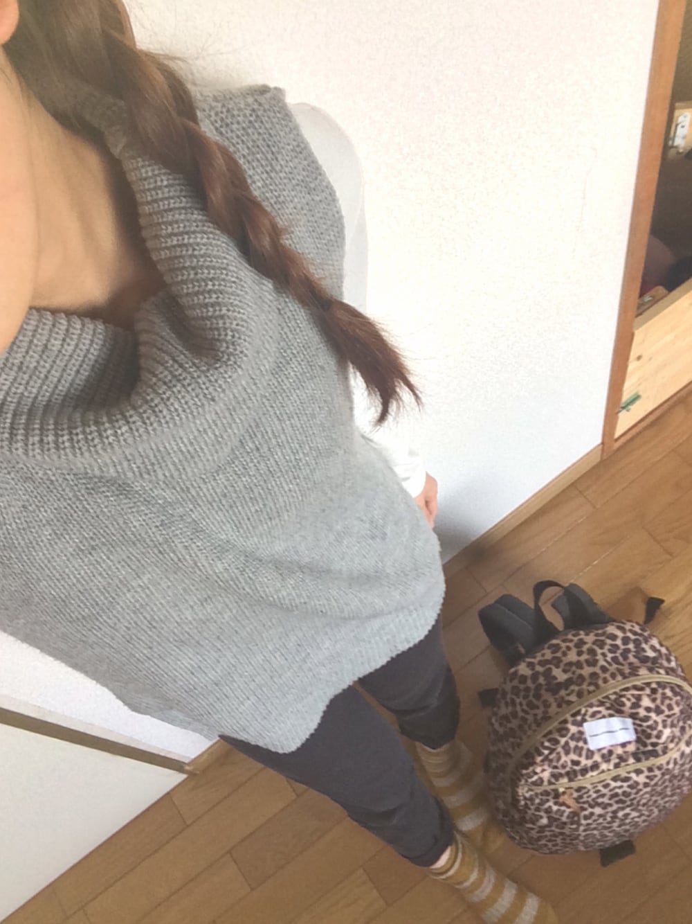 今日はヒョウ柄リュック‼︎ 荷物パンパンです‼︎ 子どもの検診行ってきまーす🙋