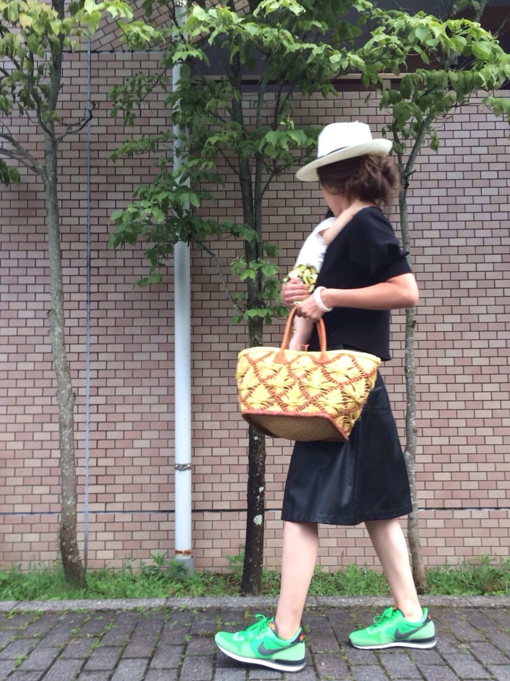 また溜めた分一気にUPします(o´罒`o) 先月pic 雨の日コーデ トップスは短め丈のパフスリーブ レザー×かごバッグは、数年前にセレクトSHOPで購入しました ◉Instagram → @y.akemiii igにコーデ先に載せてます٩( ᐛ )و