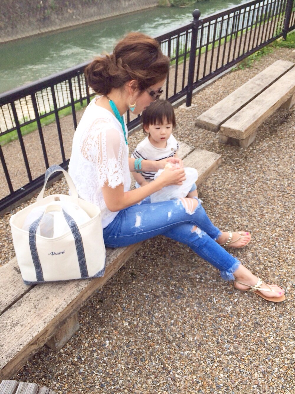 先月pic 川遊びした後は道の駅でおやつタイム(๑><๑)۶ ◉Instagram → @y.akemiii igにコーデ先に載せてます٩( ᐛ )و
