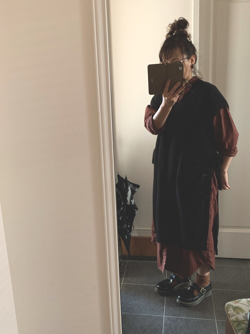 このベストが気に入って色違いで買いました。 しまむらです。 色んなワンピやパンツに合わせてコーデしてます。 品番 2219318 でお取り寄せできます。 カラーはブラウンと黒