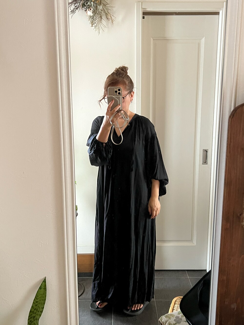 着痩せするワンピース、158cmでLを購入、スレスレの長さです。