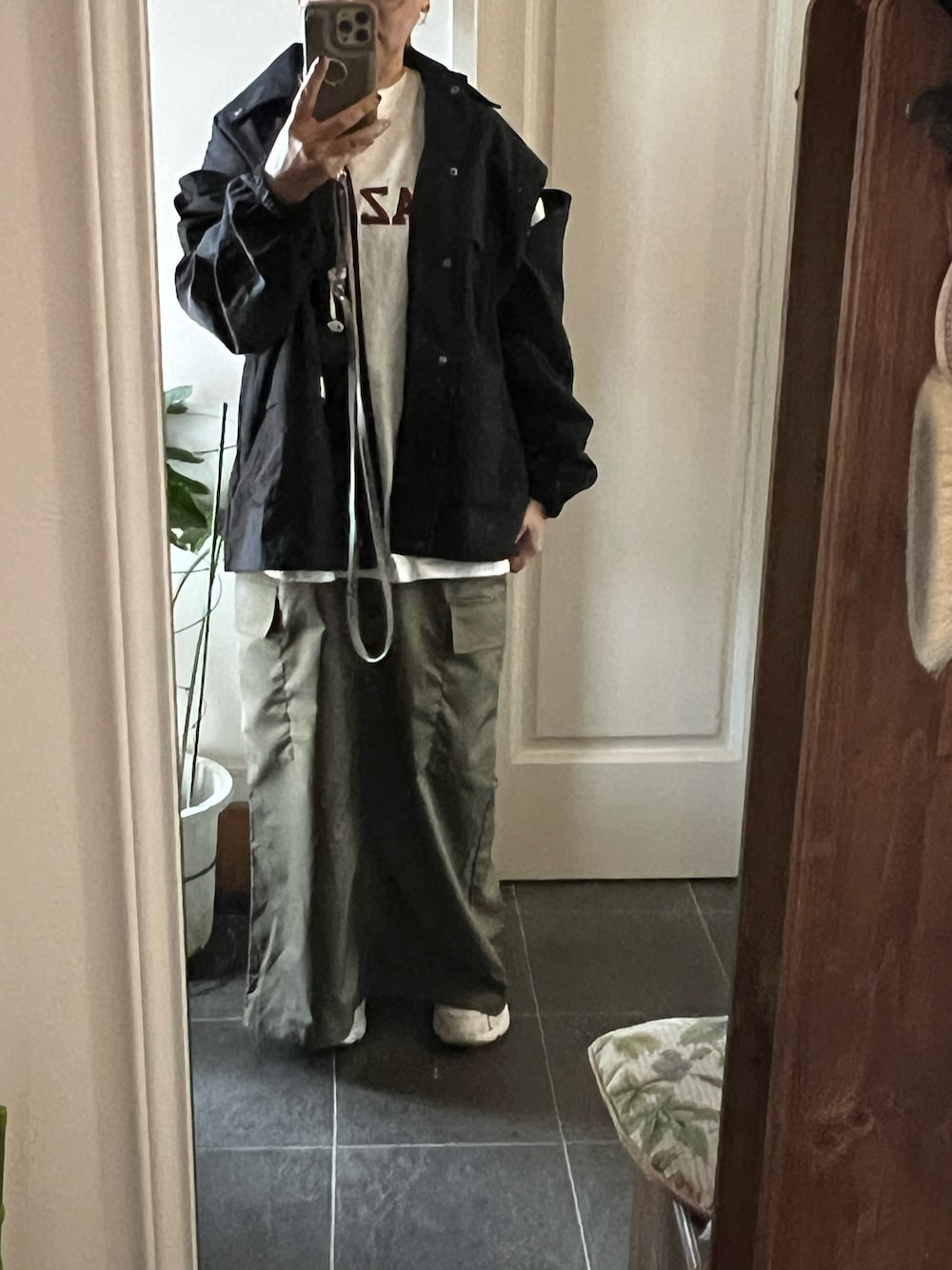 このスカートLを購入したけど、多分腰はりさんじゃ無ければMで大丈夫だと思う、結構大きかった トップスは、ベストとしても着れて下が絞められるので形を変えて着れてボトムスとのバランスで変えれるので良かった。