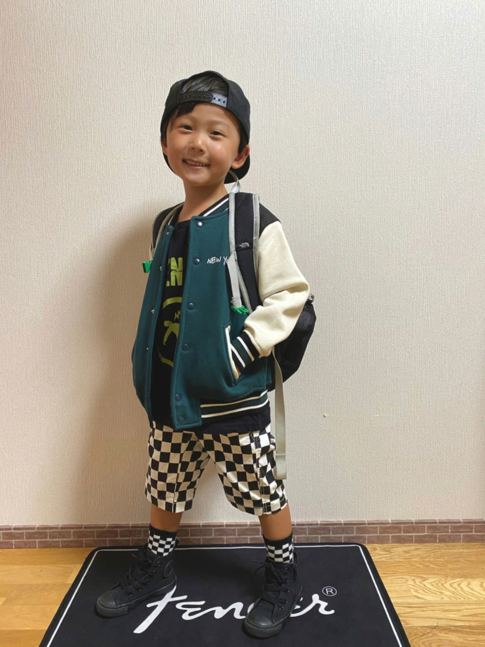 覗いてくださりありがとうございます🙇♂️ #チェッカーずまつり2021秋 参加させていただきます。主催者様よろしくお願いします🙇♂️ まだ5歳児だけど小学生になったらこんなオールドスクールな感じで通学してほしいオッサンの欲望を具現化してみました🤡 キャップ・・・JAM HOME MADE スタジャン・・・ZARA KIDS カットソー・・・GREEN DAY バックパック・・・ THE NORTH FACE パンツ・・・BREEZE スニーカー・・・converse BREEZEのハーパンに至ってはいつまで主力で履いてるんでしょうか😅サイズUPして履き続けてるから1年半愛用してますね😰 今日は運動会なのでがんばってもらいたいです、僕の体が☠️