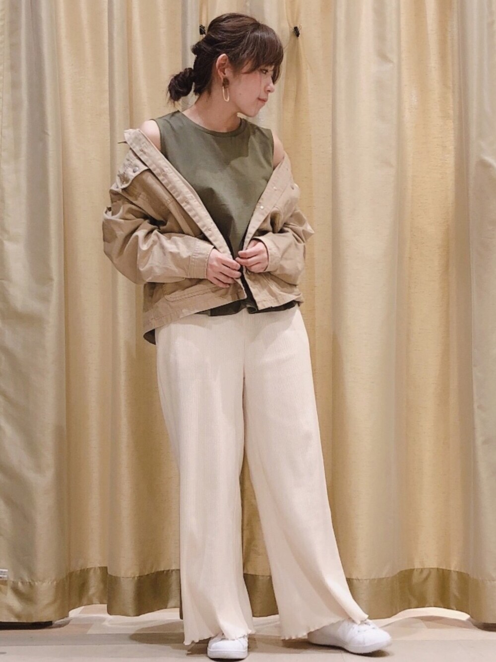 ラフコーデ✨ ノースリーブのトップスは オーガニックコットンで肌触りが良いです◎ サイズも後ろにタックが入っているので少しゆったりしています😊 パンツは生地がそんなに厚くないので これからの時期も重宝しそう🌼 ウエストも総ゴムなので楽ちん😍 アイボリーでも透け感があまりないのでおススメです💓
