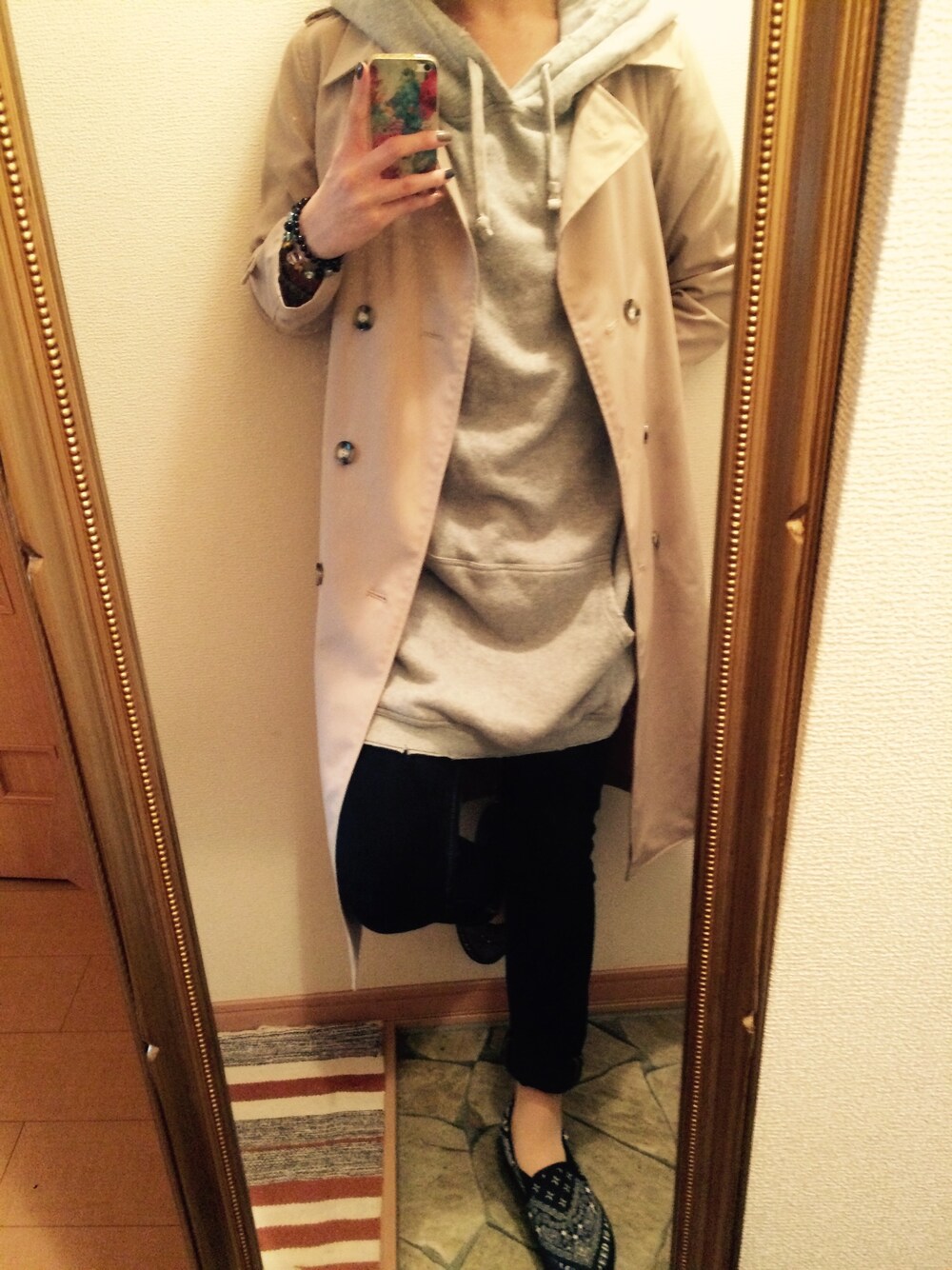 今日は春陽気なのでおnewのロングトレンチを着てみた