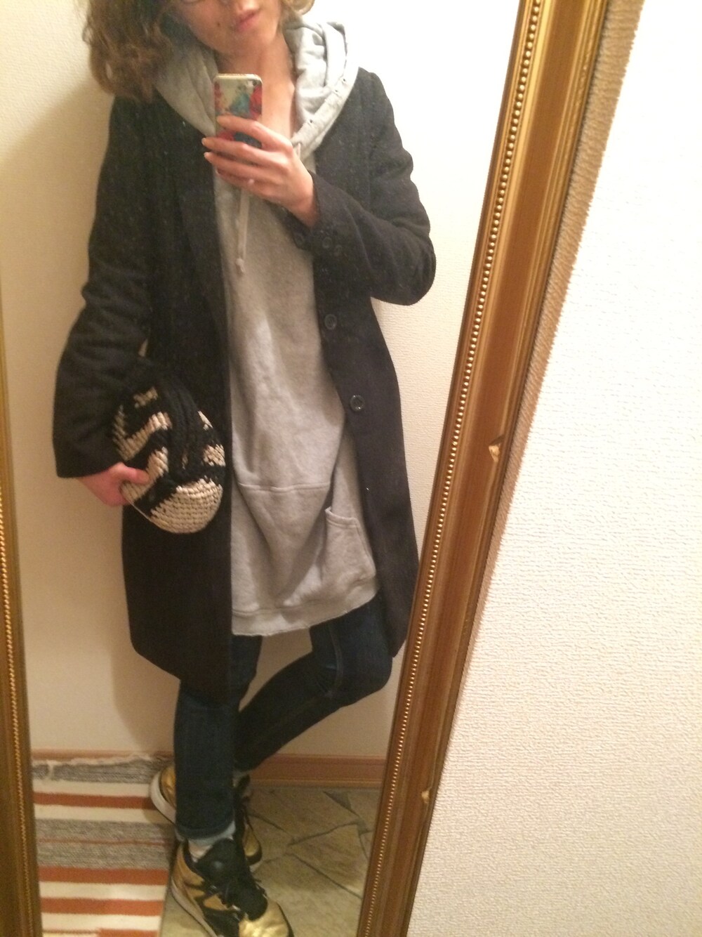 以外と合わせてなかったコーデ 休日だからラフに 明日髪の毛切るからぐるぐるに巻いてみた