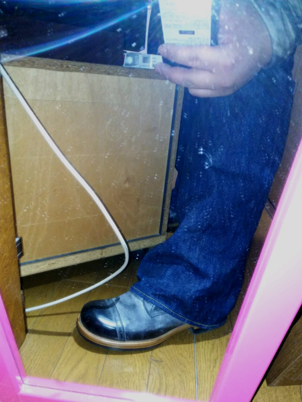 アイアンブーツ5515とサムライジーンズ17ozブーツカット、立った状態で写真を撮るとこんな感じ(´・ω・`) かっこいいですね(*´ω`*)