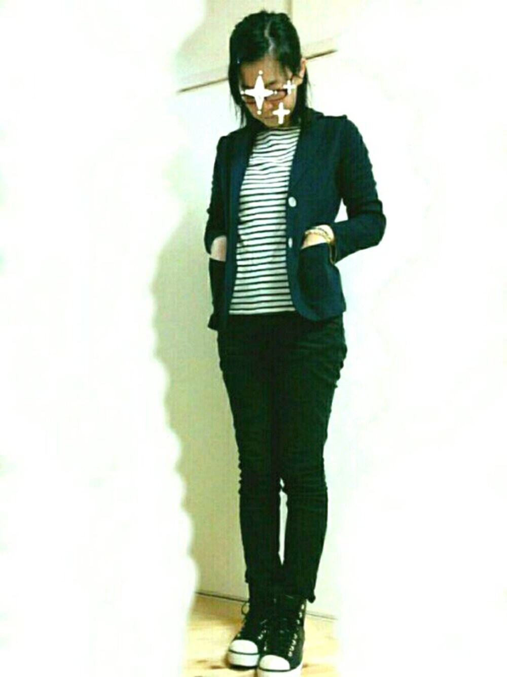 あめだし さむいし 結局、ダウン着て出勤っていう毎日です 職場は25度(夏か!!)なもんで、 重ね着をするしかなくて… ジャケットの下は7分です ジャケット着てても、 靴はCONVERSE♡ 長ぐつこれしかないのだもの~ HOLLYWOODLUNCHMARKETのカットソーはイロ、カタチ違いで大量に持ってます♪