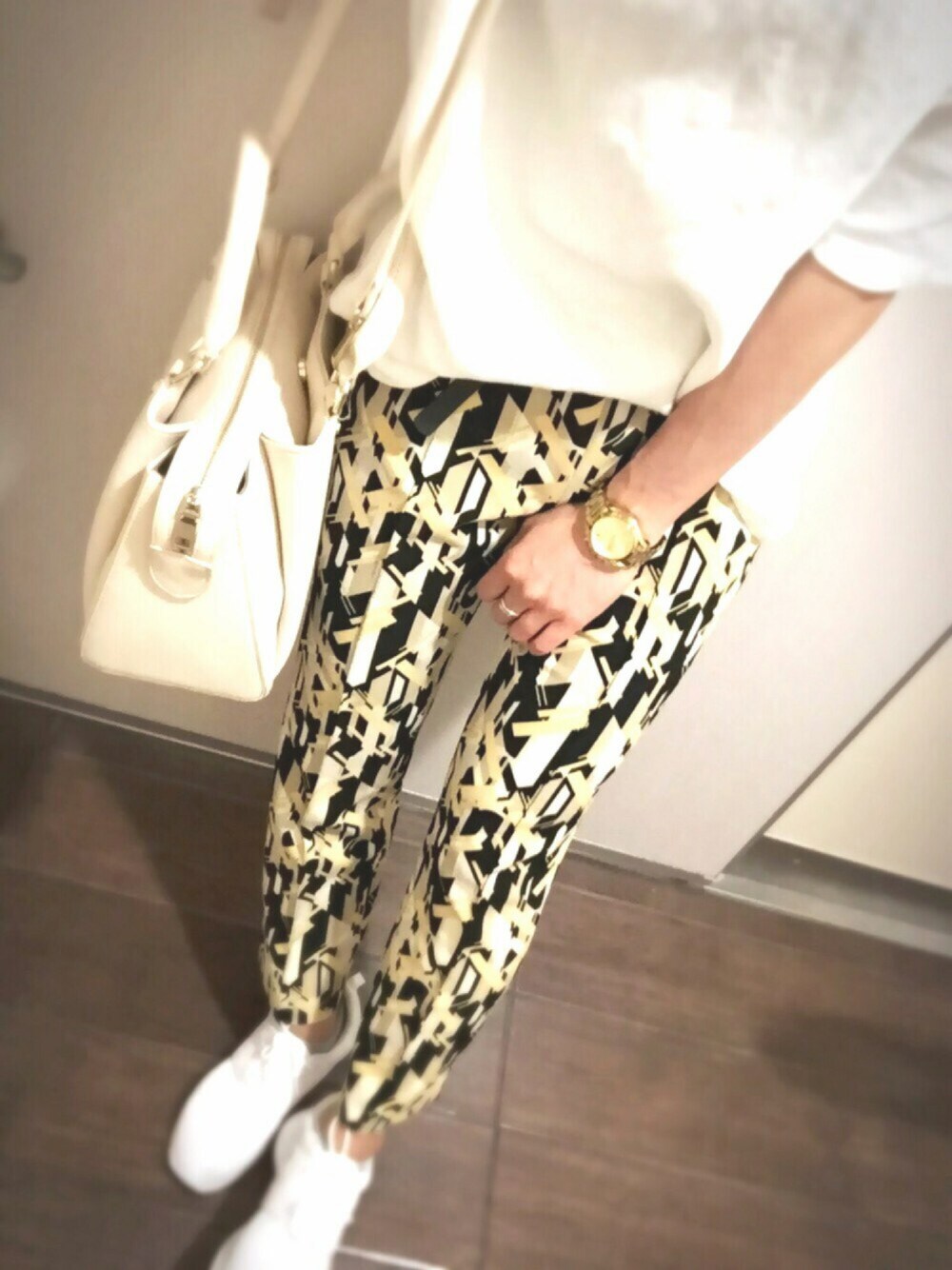 Whiteコーデ☀️✨🍃 スラックスは以前ZARAで一目惚れ🙌🏻😶💕 派手派手なので、他はシンプルに、 ホワイトな気分〜〜✌️ 通勤はヒール、休日はスニーカー派です✌️💋 知らないおばあちゃん👵に 「涼しそうやねぇ〜💕」って言われた😶 こーゆーおばあちゃんだいすき😂