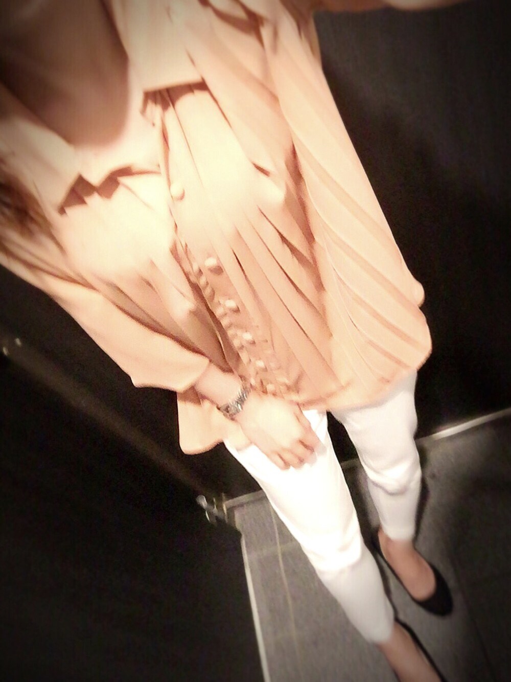 久々にホワイトパンツcode💼💕 ダスティピンクのシャツはかなり前に お安く購入したものですが、中々使える💕🍹👠 通勤時や、フォローさせていただいてる方を 見ているとskirtをサラッと着こなす女性が 多くて尊敬😶🗯💨 (パンツスタイル派なので🤔🗯)