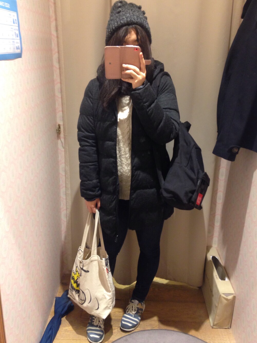こんばんは! 連日earthのセールに行っては、1000円のスカート買ったり、1500円のニット買ったりとちびちび買い物してます笑 今日はでもどうしても欲しかったピーコートを買いに行きました!今のピーコートはホコリもつくし重いしもう寿命な感じだったのですが、無事買い換えられました! しかも3034円で笑!びっくりー!! 今日はすごーいカジュアルな感じにしてみました! マンハッタンのリュックめっちゃお気に入りです(´,,・ω・,,`)ドット柄で可愛いし、使いやすいです! うーん…もうちょっと太もも痩せたいです!太い笑💔 明日はいよいよearthの新作会!雪降らないよう祈っています✨