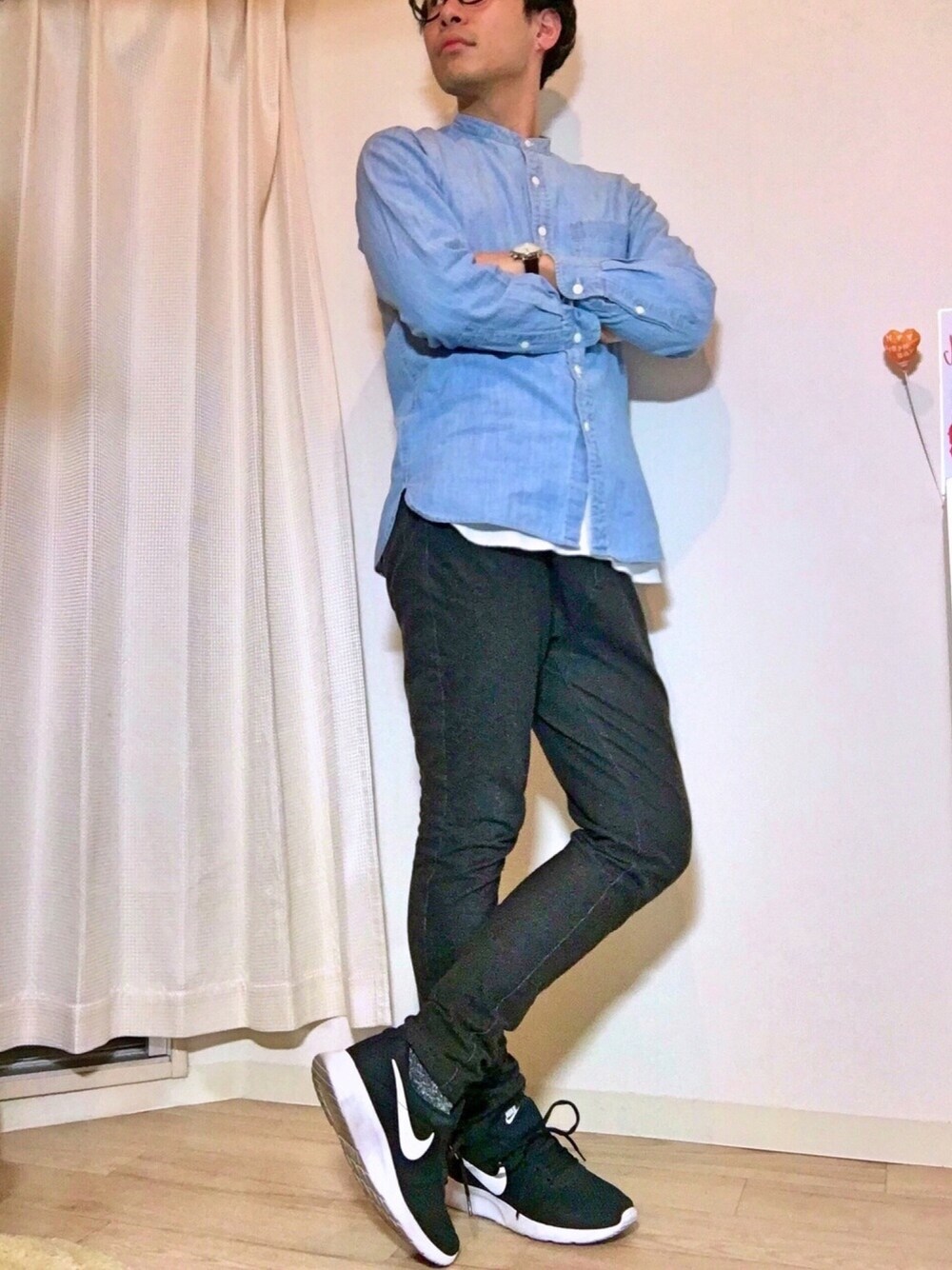 めっちゃ久しぶり。 UNIQLOのスタンドカラーシャンブレーシャツ。