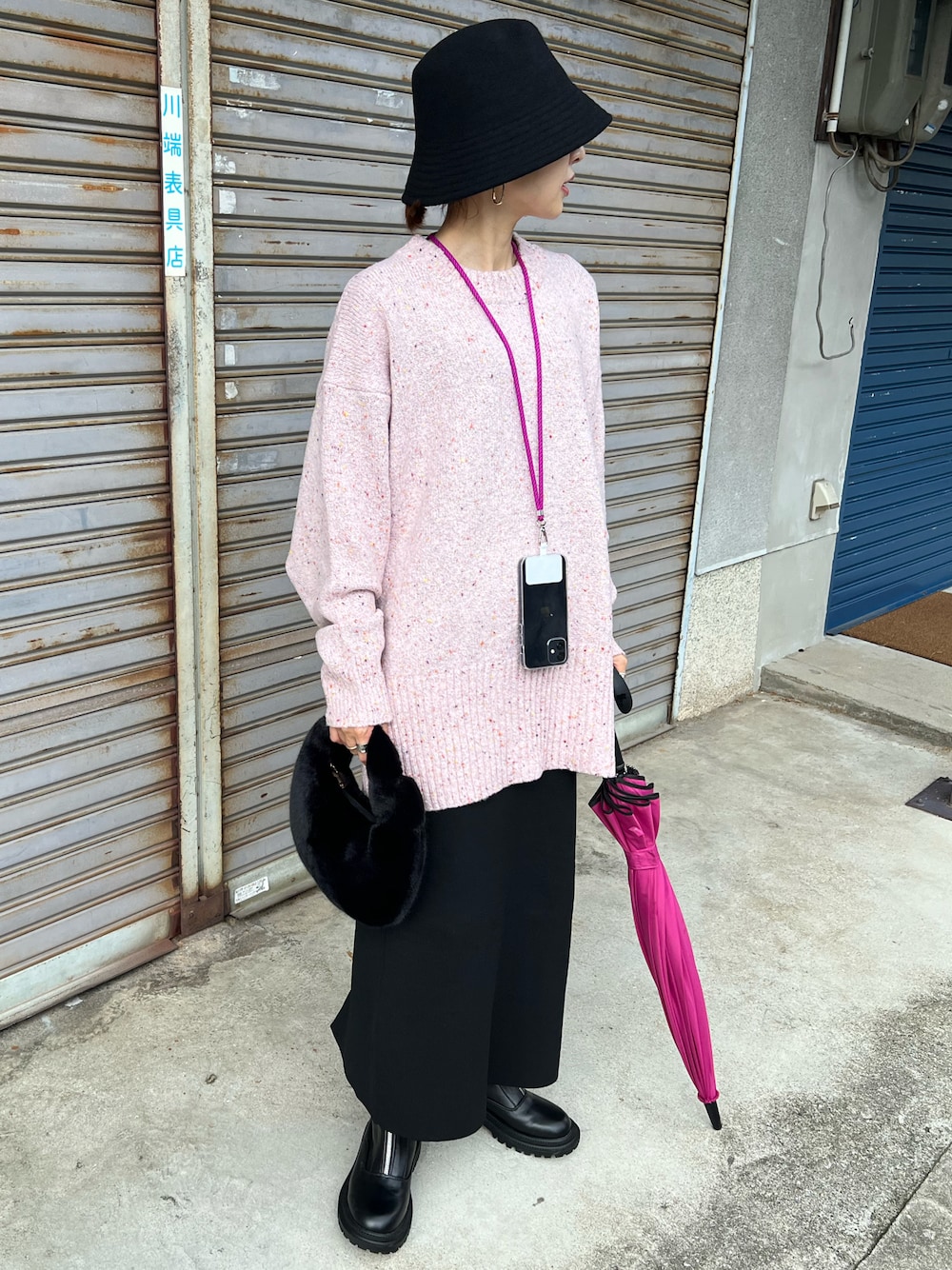 outfit カラーネップがかわいいピンクニット😊