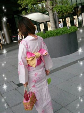 (浴衣、ピンク系)」を使った、ぉきさん(レディース)の夏コーディネート
