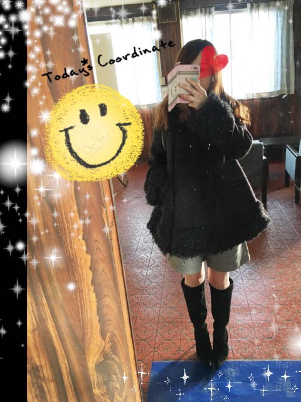 トップスは カーディガンを着てるのですが 撮るの忘れた(´Д` ) 首元寒いので、ファーをぷらす⛄️ 見ていただいた方 ありがとうございます💓