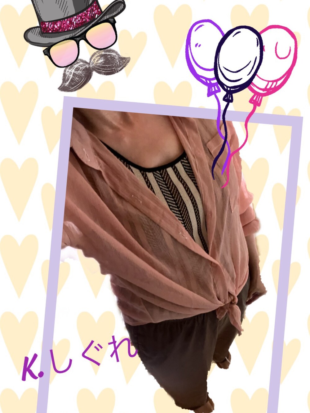 いつも「いいね」をありがとうございます✨ ピンク×ブラウン🎨 差し色はブラック🎨 部屋でパシャり📸 スタンプで自画像?を作って遊んでみた👀 はい。私はこんな人です😳笑