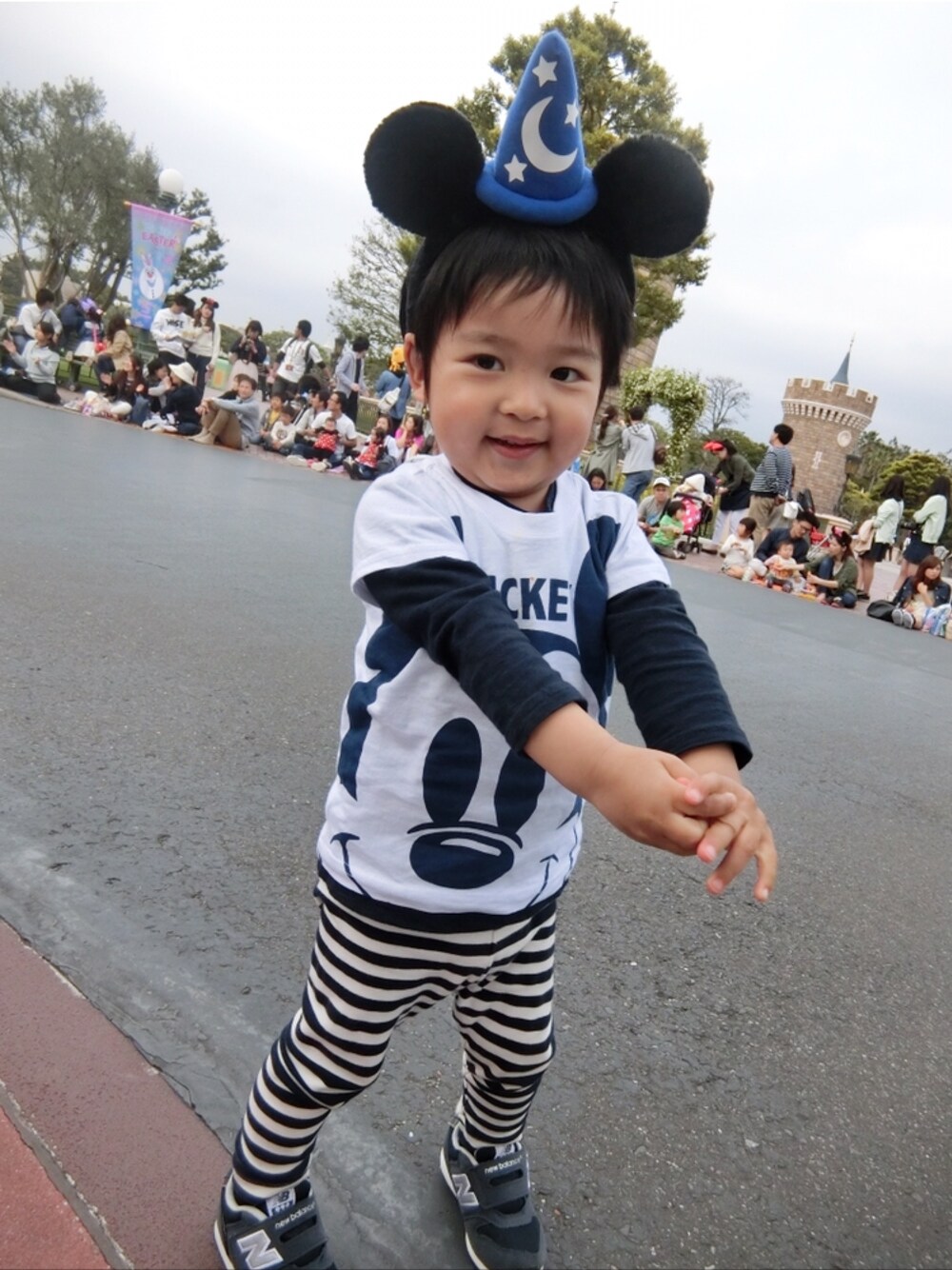 Happy Easter🐰🐣🌷🍃✨ 今回はミッキーTでネイビーブルーのコーデ💙💙💙 顔パンパンだねこれ🙄💭w