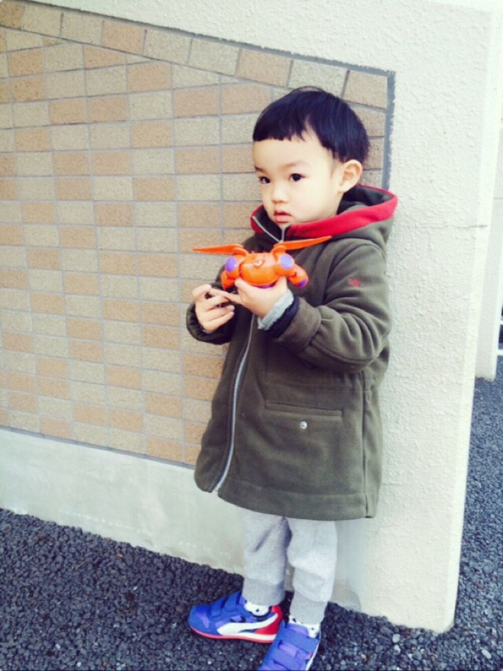 ベイマックス観てから どこ行くにもベイマックスと一緒♡ フリースコートだけだと寒いかなと思って 中にはインナーダウン着てます🙌