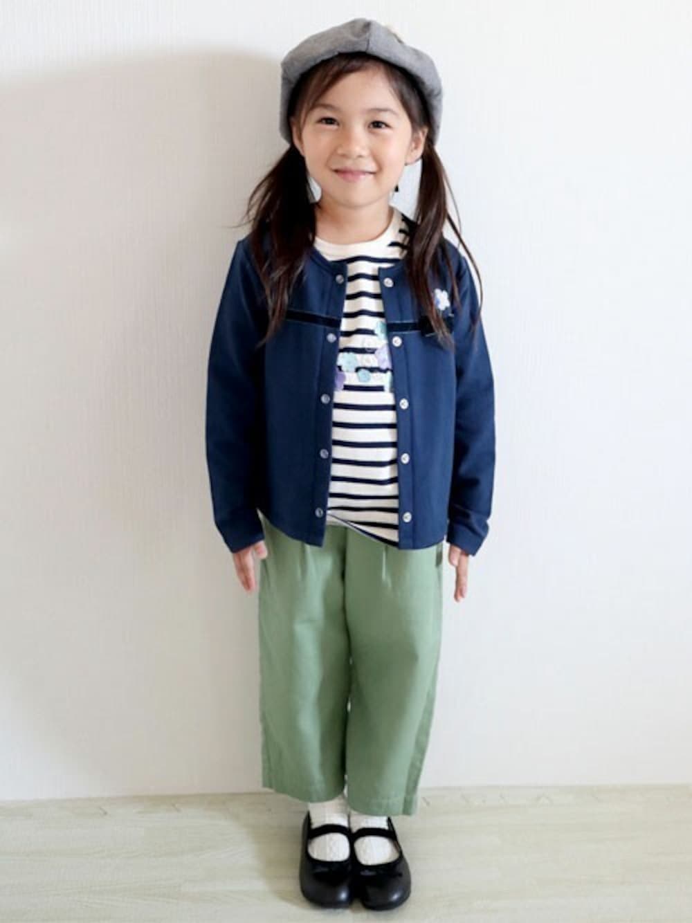 KPのカーディガン/ボレロ「リボン付きストレッチミニ裏毛ガーディガン(100-130cm)」を使ったコーディネート