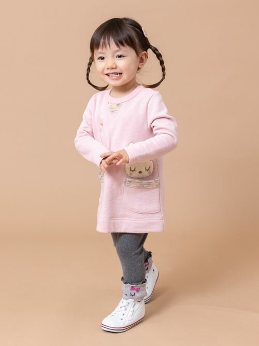 KPのスウェット「【日本製】mimiちゃんアップリケ刺しゅうかすり裏毛長袖チュニック(80~90)」を使ったコーディネート