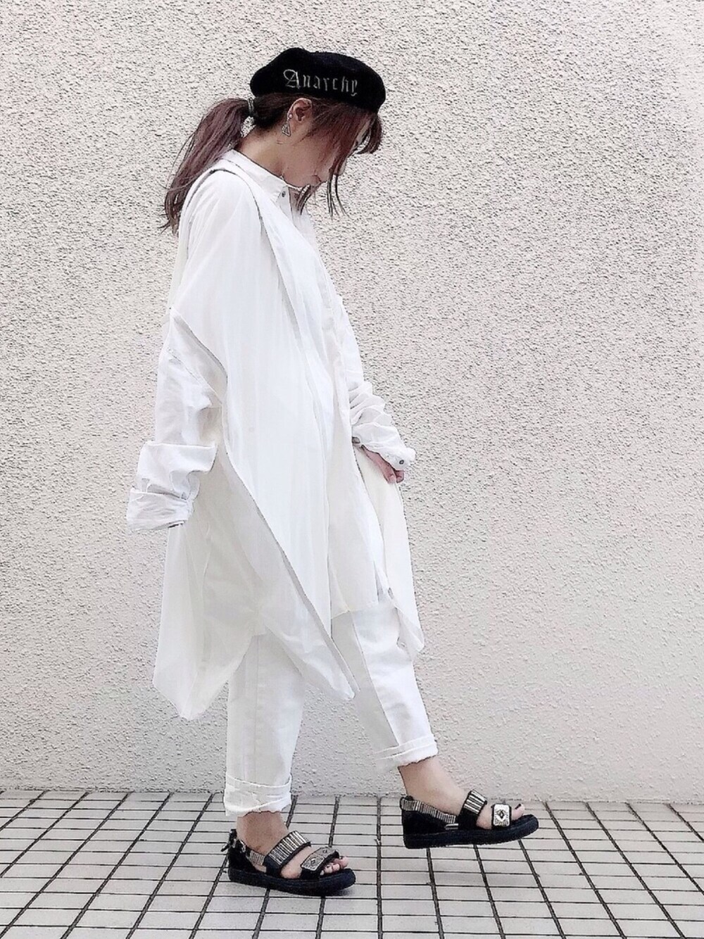全身真っ白の日。 とても忙しかったので、リフレッシュするためにオールホワイトコーデにしてみました。 このシャツワンピはリメイクで、袖がめちゃくちゃ長いところがお気に入り。