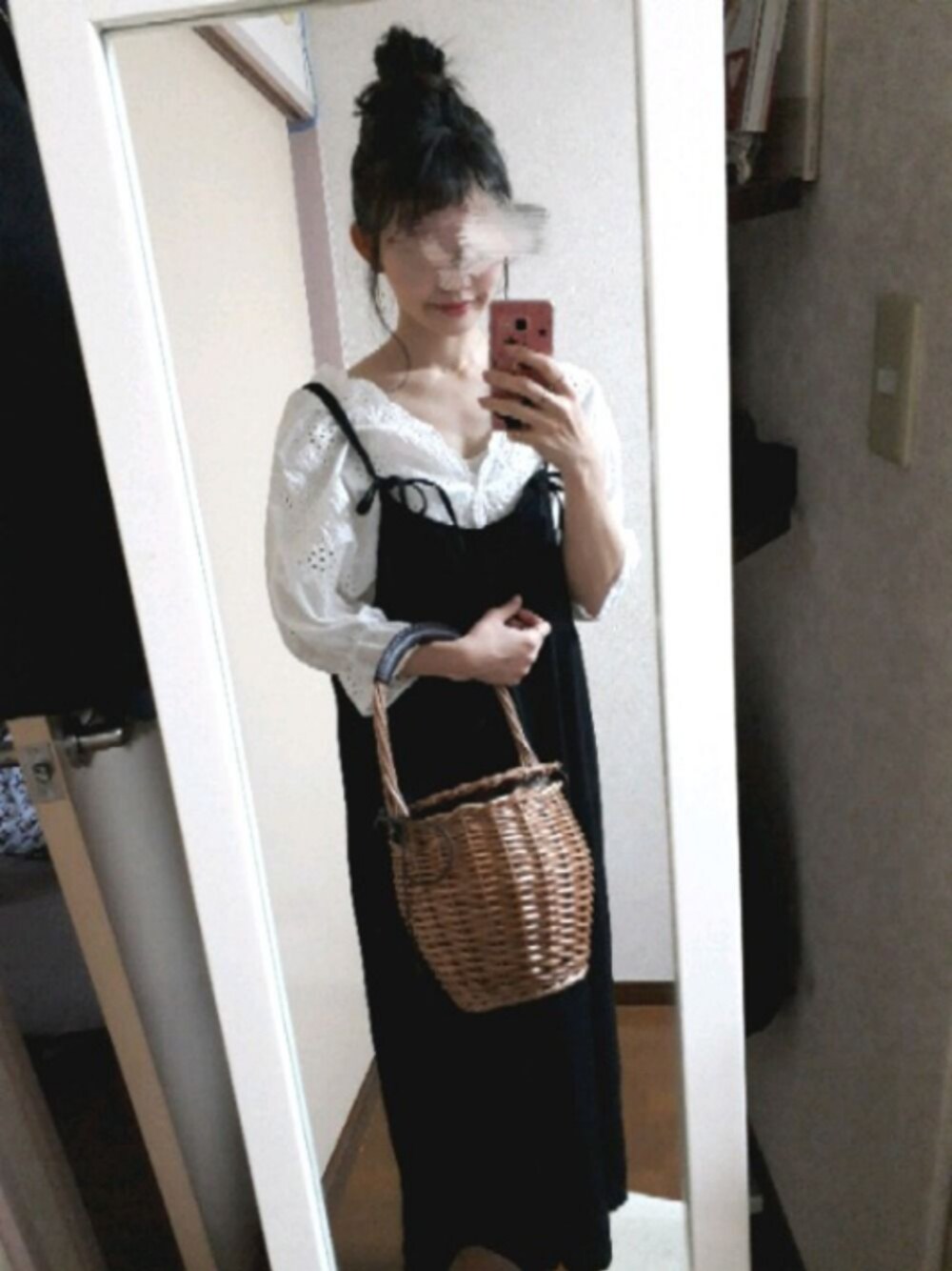 シンプルコーデ💓 去年から流行っていたブラウスが今年も活躍😚 サロペットもリボン付きで可愛い形😌