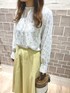 繊細な花柄が可愛いブラウス♪ 前後着が可能で後ろボタンでも着ていただけます☺︎ 春カラーのボトムと合わせて明るいイメージにすると季節感が出て◎