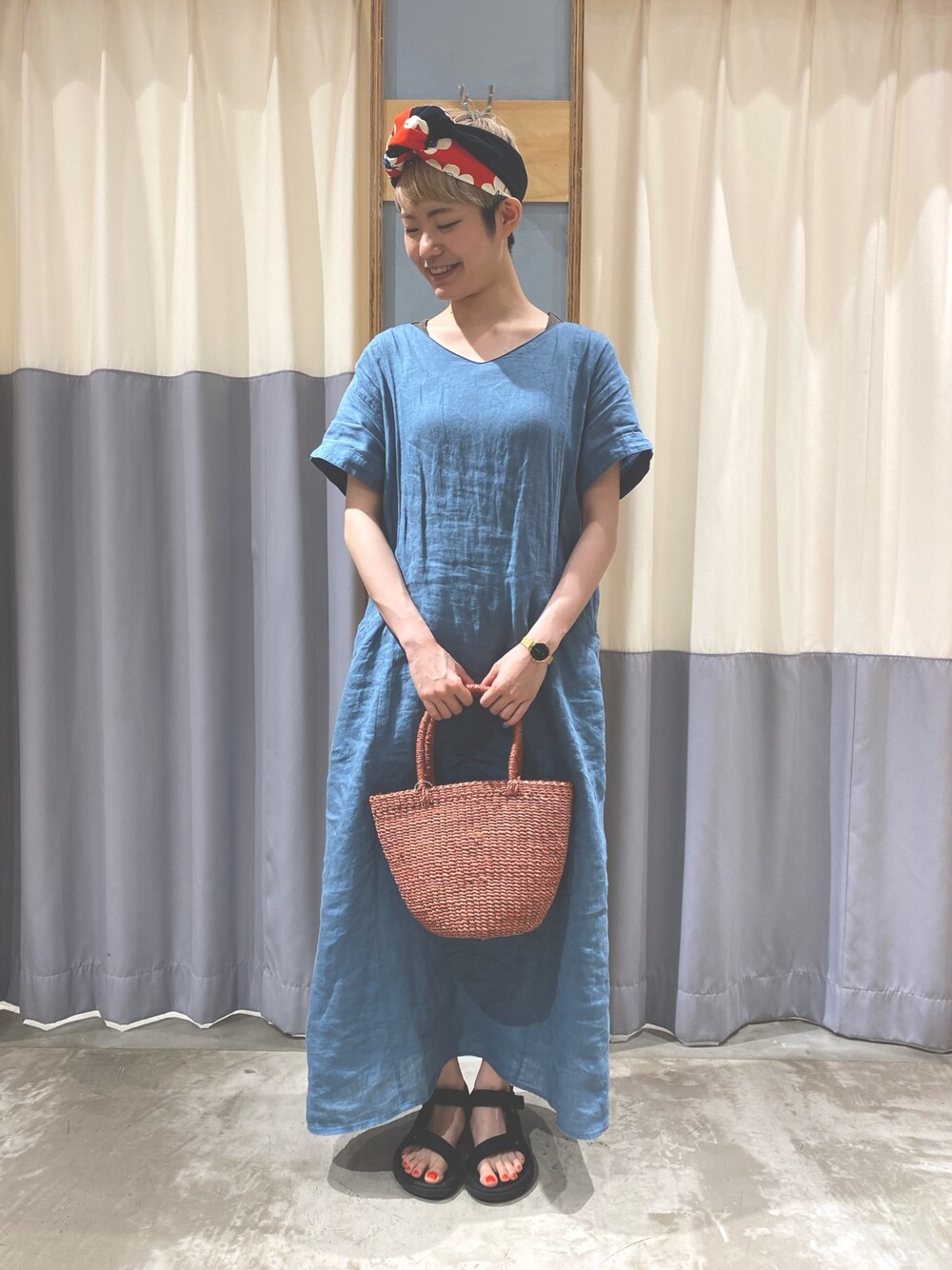 Akiのワンピース「リネン半袖ワンピース」を使ったコーディネート