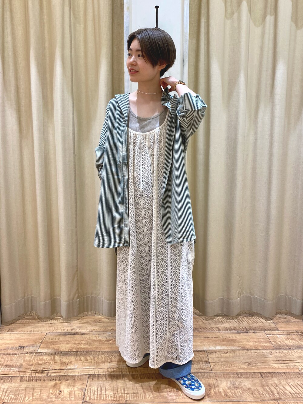 出勤コーデです🫧 シャツを羽織に、キャミワンピとタンクトップで涼しく今すぐ着れるコーディネートです🙆♀️✨ 全アイテムノンアイロンで着用可能です。 シャツはオーバーサイズなのでサラッと羽織ると風が通り、気温感が難しい今の季節に1枚あると重宝間違いなしです◎ ぜひ店頭でチェックしてください🫶