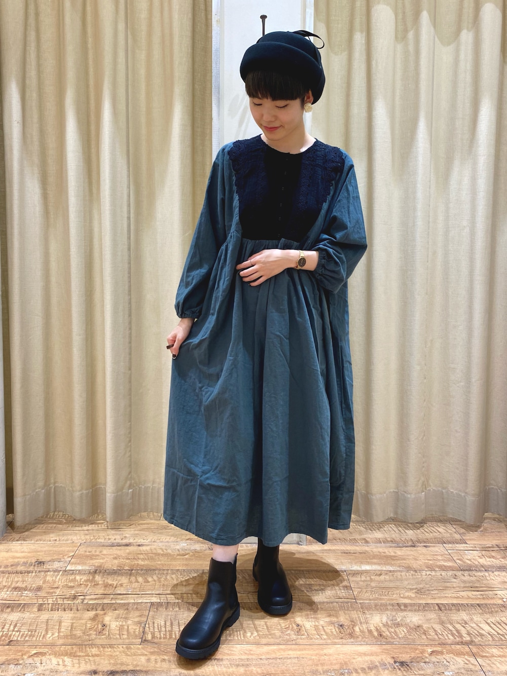 ガーリーテイストのワンピースですが ブーツと合わして甘さを控えめに🙆♀️ 着用カラーはデニムやスニーカーとも相性がいいので 普段ガーリーを着られない方にもオススメです🧸🫧