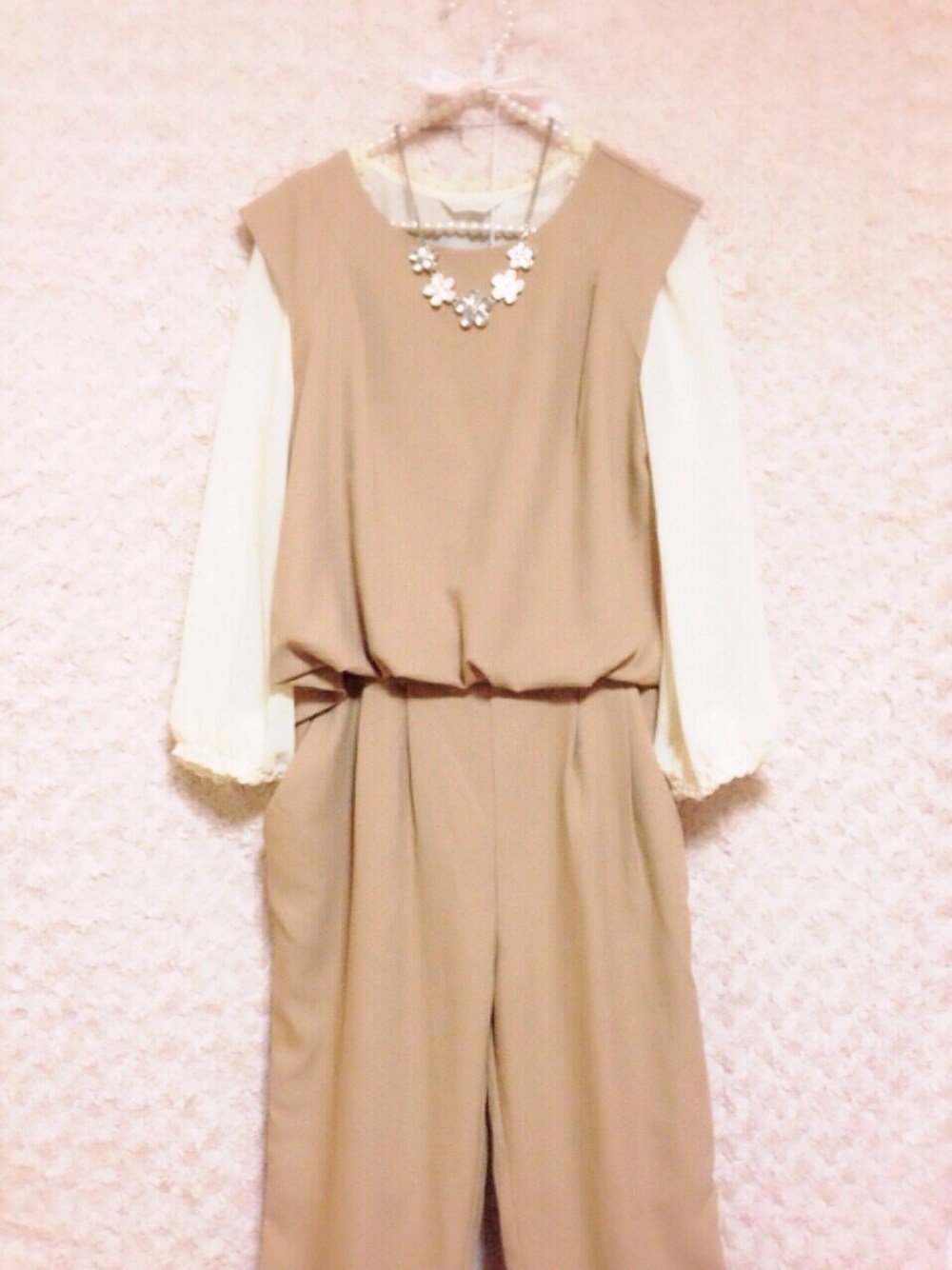 セットアップワンピ?をコーデしました(*´ω`*) トップス部分とパンツ部分が別々に使えるものです。 使いにくいと思って、クローゼットの奥で眠っていたシフォンワンピが意外に使えてますΣ(゚Д゚;≡;゚д゚) シフォンワンピは、袖を内側に折って縫いました。 大きめのアクセを合わせて、ヒールのある靴を履きます。