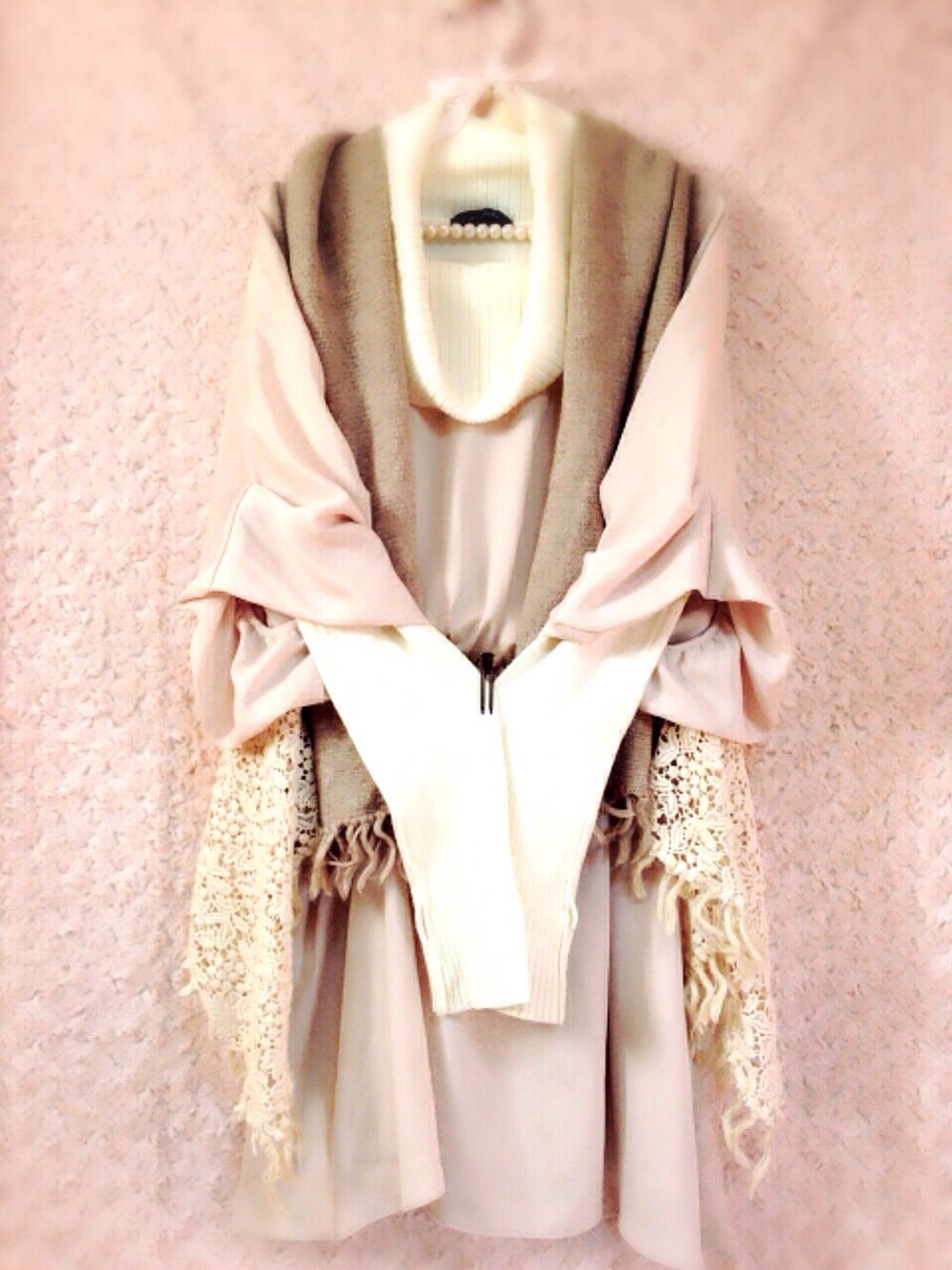 古着屋さんで購入したものをコーデ(*´ω`*) 着方がたくさんあって、 着回しがききそうなストールベストを購入しました!1300円! シンプルな服が、華やかになります。 こういう凝ったデザイン性のあるものって、 人と被らないから好きです(*♡ω♡*) インナーには、 オフタートルのニットを合わせました。 今回はニット×ワンピースに合わせましたが、 淡いベージュのマキシスカートと合わせると、 森ガールチックになりそう! 独り言ですが、、、今月、、、 古着屋さんに行き過ぎたなぁ、、、 行くたびに魅力的なものがあって、 お手頃な価格なのでランチに行ったつもりで 毎回何か購入してしまう。 ジュース買ったつもりで買えるものも多々ある。 ただ、、、 買いすぎてまだ着てない物が増えすぎているので、ガンガン着まわしていきます!! 今回のコーデ、全部古着!