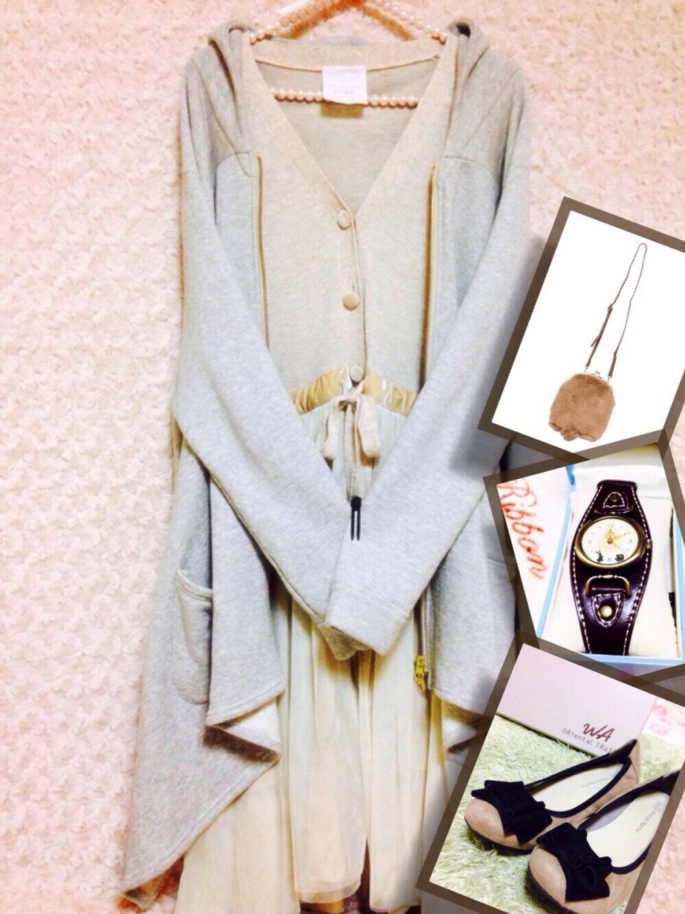 服・バッグは古着です(*´ω`*) 前回のコーデと同じワンピースですが。 こちらのワンピースを着ていると 自己満的にテンションが上がります! 羽織物として、 形の変わったパーカー。 フードがあるのかないのか わからないくらいのフード。 前と後ろの長さが違っていて カーディガンにありそうなデザイン。 スウェット生地なとこに一目惚れ♡ 合わせ忘れて別写真ですが、 バッグはしっぽがついてる ふわふわのバッグです♡